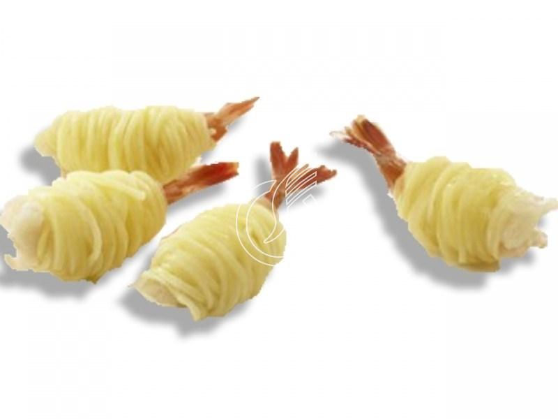 Crevettes enroulées d’un fil de pomme de terre