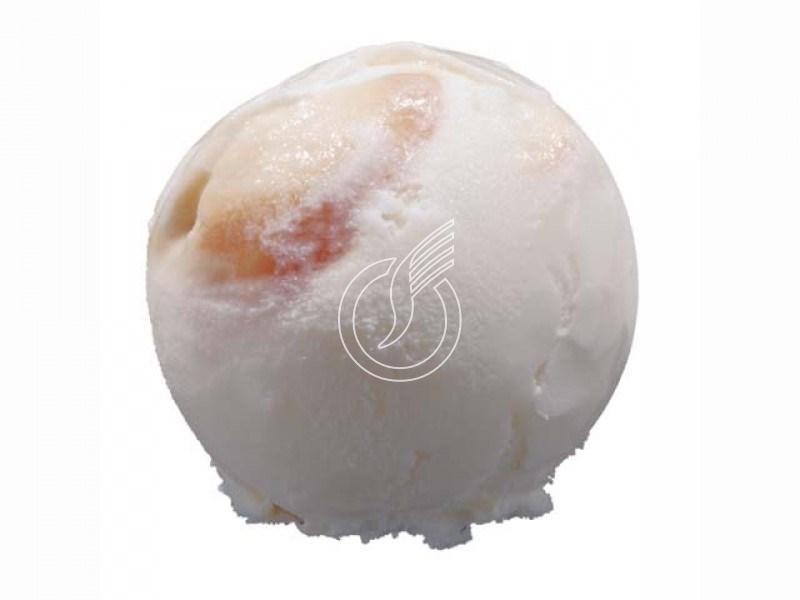 A la crème, goût légèrement vanillé, marbrage sauce caramel et éclats de caramel.