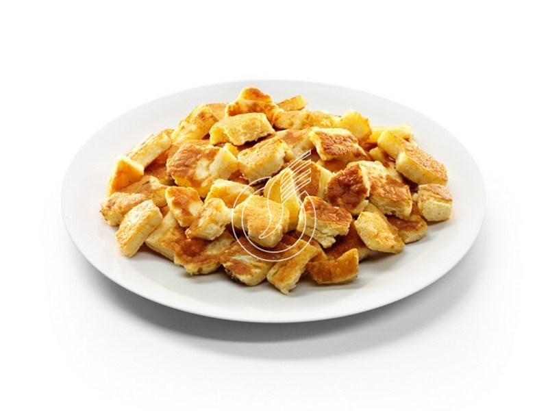 Farine de froment, eau, œufs, sucre et raisins secs.